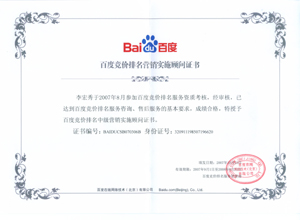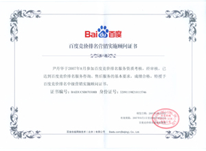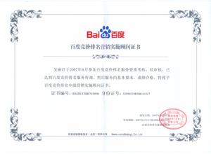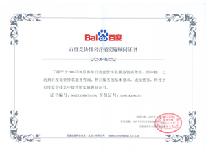 鹽城思科網(wǎng)絡(luò)工程有限公司作為百度鹽城地區(qū)總分銷商,在2007年度參加百度競(jìng)價(jià)排名服務(wù)資質(zhì)考核中,經(jīng)過(guò)公司全體員工們的共同努力,再創(chuàng)佳績(jī),其中通過(guò)中級(jí)服務(wù)認(rèn)證考核8人,3人優(yōu)秀,通過(guò)率達(dá)95%,被全球最大中文搜索引擎——百度在線(北京)有限公司再次授權(quán)百度競(jìng)價(jià)排名鹽城地區(qū)唯一客戶服務(wù)中心。盡善盡美的售后、全心全意的服務(wù),思科人將用十二分的熱忱等待您的惠顧,共創(chuàng)新紀(jì)元!
