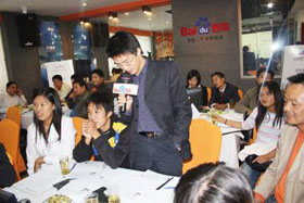 秋高氣爽,舒適宜人。2008年10月24號下午,“營銷加速度”——百度營銷專家培訓(xùn)會,在美麗的丹頂鶴之鄉(xiāng)鹽城拉開了帷幕。在思科百度商務(wù)會所里,客戶們齊聚一堂,氣氛甚是融洽。本次會議真可謂陣容強(qiáng)大,百度客服部經(jīng)理張鵬先生與百度渠道部經(jīng)理晟皞先生兩大經(jīng)理齊上陣,再加上思科資深網(wǎng)絡(luò)營銷專家、客服部經(jīng)理盧全女士精彩而實用的演講,現(xiàn)場客戶個個大飽耳福,獲益非淺。會議開場主持人帶領(lǐng)大家玩默契火拼游戲,破冰熱場,大家玩得不亦樂呼!短暫的游戲后,與會嘉賓都專心致志的聽著張鵬經(jīng)理、盧全經(jīng)理精彩的演講。在有獎問答環(huán)節(jié),客戶們更是奮勇?lián)尨?,把整個會議推向了高潮。