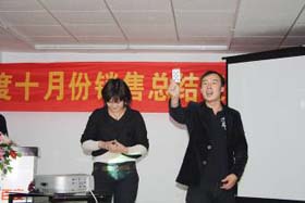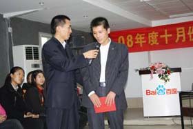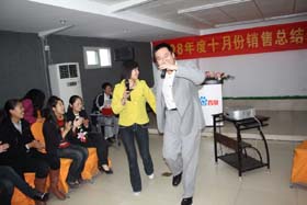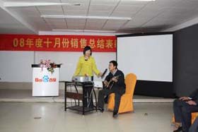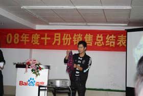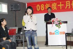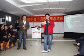 涼風(fēng)習(xí)習(xí),秋雨綿綿澆不滅我們涌動(dòng)的青春、火熱的激情。2008年11月8號(hào)下午,我司十月份銷售總結(jié)表彰大會(huì)順利拉開(kāi)了帷幕。百度渠道部經(jīng)理晟皞先生為此次會(huì)議作了一番別具風(fēng)格的致詞,與會(huì)人員無(wú)不熱情高漲。與其說(shuō)是會(huì)議不如說(shuō)是狂歡派對(duì),大家不由自主地敞開(kāi)心扉、釋放激情。