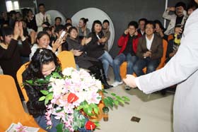 王麗經(jīng)理深情獨(dú)唱,客服部美女歌聲甜美,場(chǎng)下fans奮勇獻(xiàn)花