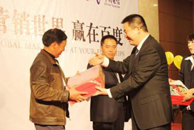 2008年11月22日,陽光絢美,鮮花競放,在這暖暖的初冬季節(jié)里,營銷世界?贏在百度——2008企業(yè)營銷峰會在鹽城市瀛州賓館拉開了帷幕。此次會議規(guī)模空前盛大,400多名企業(yè)家朋友齊聚一堂,我們還有幸邀請了鹽都?亭湖分局局長王林釗及26個(gè)鄉(xiāng)鎮(zhèn)的電信支局長擔(dān)任會議嘉賓,金牌電臺主持人楊帆先生擔(dān)任會議主持。會議開場,主持人帶領(lǐng)大家做“自我營銷”互動小游戲,娛樂之余直入會議主題。為了感謝各位企業(yè)家朋友們的光臨,本次會議特設(shè)抽獎(jiǎng)環(huán)節(jié),第一輪抽獎(jiǎng)環(huán)節(jié)后,企業(yè)家朋友們個(gè)個(gè)激情高漲。百度渠道部經(jīng)理晟皞先生粉墨登場,為我們帶來了精彩的主題演講。