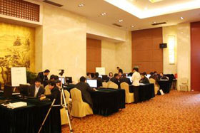 臺上晟皞經(jīng)理精彩演講,臺下企業(yè)家們聽得聚精會神遇到不懂的及時(shí)向我們的工作人員請教