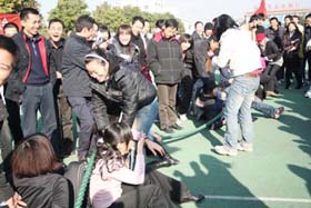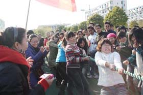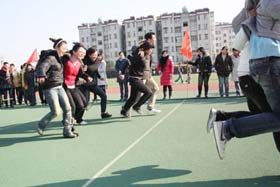 寒風簌簌,陽光絢爛。在2008年12月6日這個寒冷而富有激情的日子里,我司第一屆冬季運動會火熱開展。為了充分調動大家的激情,此次比賽項目的策劃可謂煞費苦心。除了籃球賽、4*100接力賽、100米短跑、乒乓球比賽、等傳統(tǒng)比賽項目外,新增了很多趣味比賽項目如:趕小豬、兩人三足跑、夾球跑……大家玩得不亦樂乎!為了充分調動大家積極性,我們?yōu)檫\動健兒們準備了豐富的獎品,有棉被、電蒸鍋、電熱水捂、手套、圍巾、領帶、保溫杯、指套裝、收音機、筆筒等等。我們還特設抽獎環(huán)節(jié),每項比賽的前三名都會獲得一張“金卡”,拿著金卡可以抽獎,中獎率為100%,未得金卡的選手們也將得到一份精美禮品。