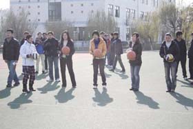 趕小豬游戲中,我們的女同胞們拍起籃球來個個英姿颯爽