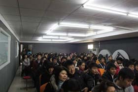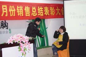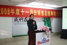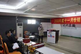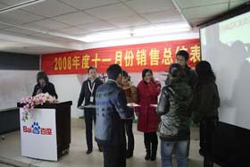 寒流襲擊,天氣驟冷,凍結(jié)不了我們熾熱的冠軍夢。2008年12月6日上午,我司11月銷售總結(jié)大會在公司7樓會議室開展得如火如荼。此次會議實現(xiàn)了從純娛樂向分享經(jīng)驗?zāi)J降霓D(zhuǎn)變,除了常規(guī)的歌曲表演、小品表演、“金典故事”講述外,我們更偏重于大家銷售經(jīng)驗、工作心得及個人見解的分享。一個人就是一個哈姆雷特,我們的銷售精英們個個經(jīng)驗豐富,演講起來一點也不遜于王安之等高級培訓(xùn)講師,相比之下更具有實用價值,更貼近我們的生活。