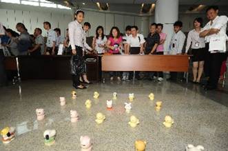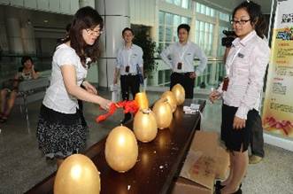 禮品區(qū)人潮涌動(dòng),工作人員井然有序地幫客戶兌換禮品